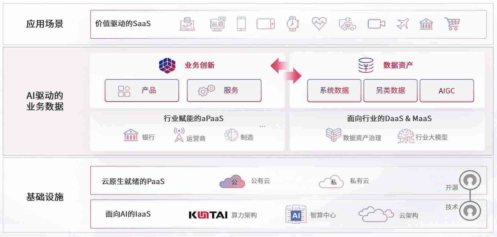 数字时代,,,,围绕企业数字化转型的关键要素,,365钱包数码开创性的提出数云融合战略和技术体系框架,,,着力在云原生、、、、数字原生、、、、AI原生和信创产业上架构产品和服务能力,,,,为处在不同数字化转型阶段的快消零售、、、、汽车、、、金融、、、、医疗、、政企、、教育、、、、运营商等行业客户提供泛在的敏捷IT能力和融合的数据驱动能力,,构建跨界融合创新的数字业务场景和新业务模式,,,助力企业级客户建立面向未来的核心能力和竞争优势,,,全面推动社会的数字化、、、智能化转型升级。。